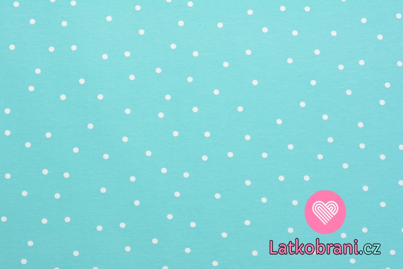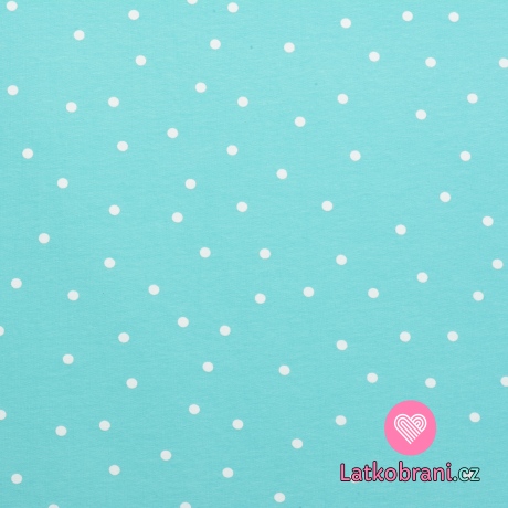 Teplákovina potisk rozházený puntík na tyrkysovo-mintové