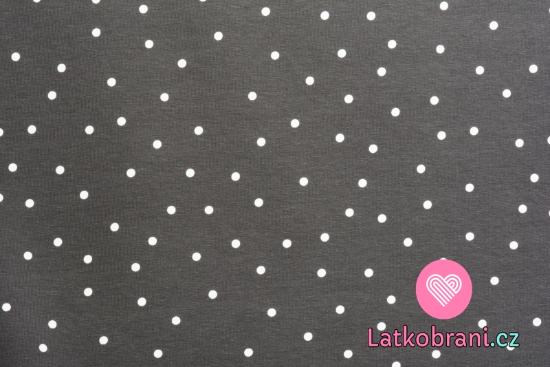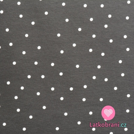 Teplákovina počesaná potisk rozházený puntík na tmavě šedé