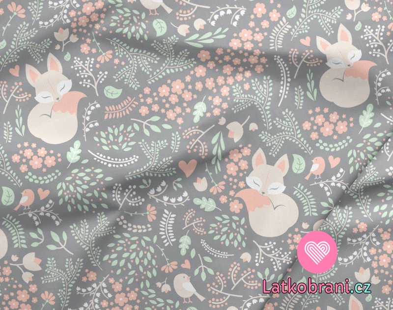 Softshell potisk lištička s kvítky na šedé