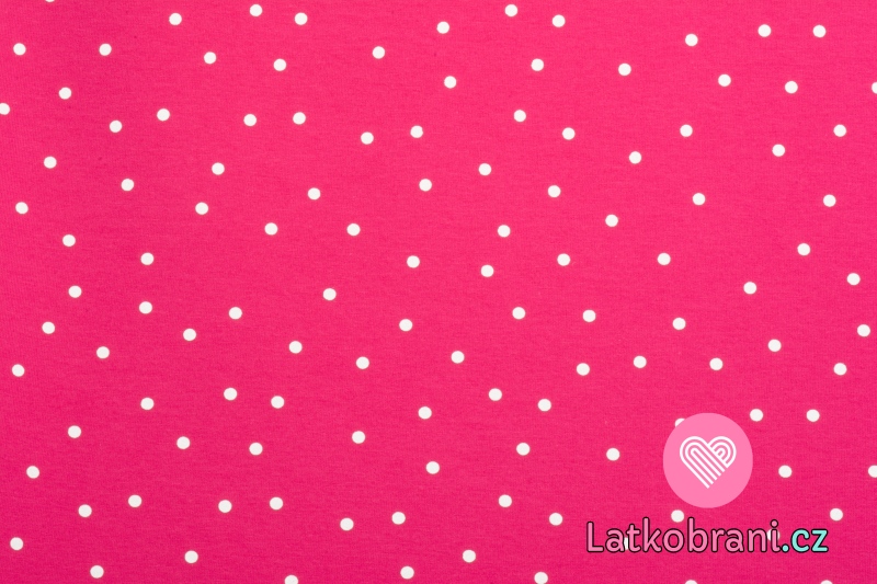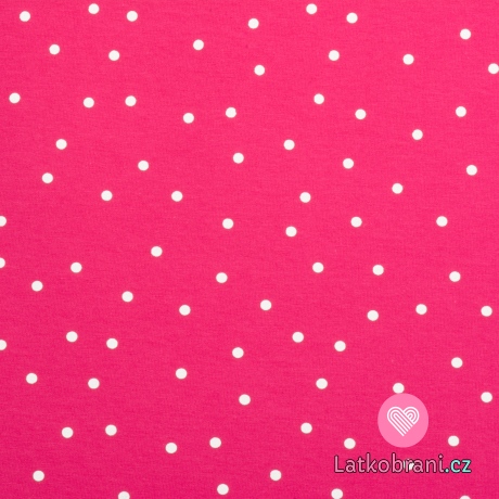 Teplákovina potisk rozházený bílý puntík na sytě růžové