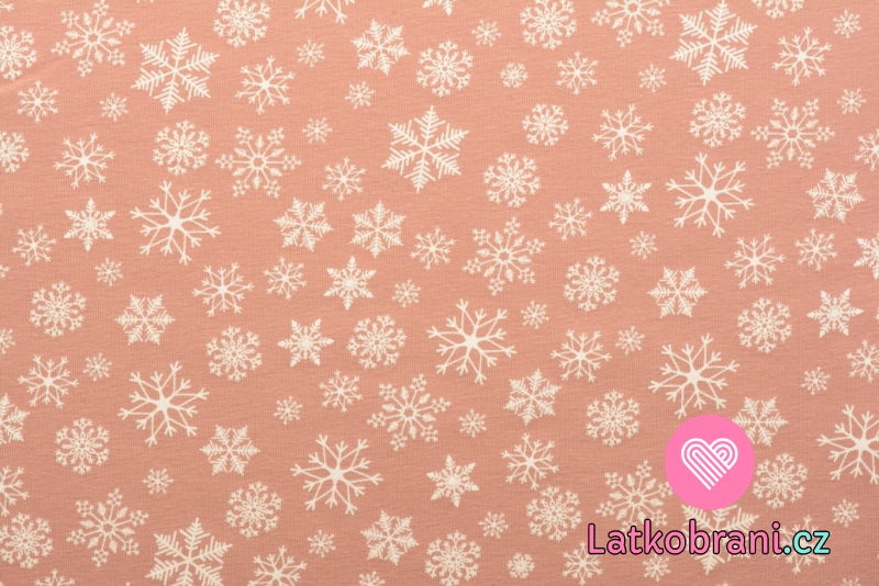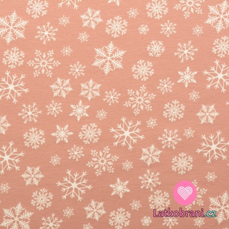 Teplákovina počesaná potisk vločky na pudrově růžové