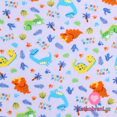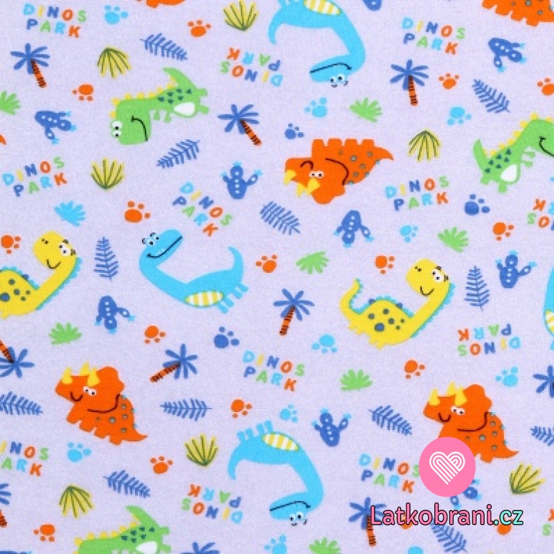 Bavlněný úplet barevní dinosauři na šedé