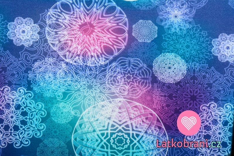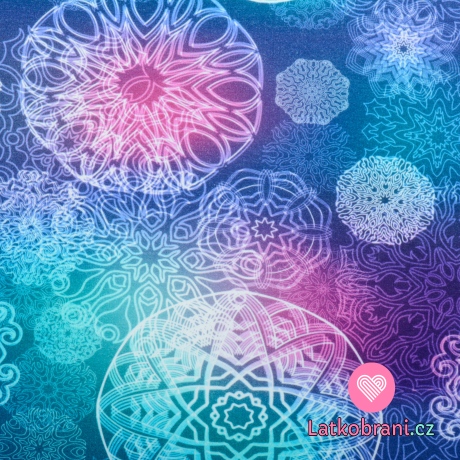 Teplákovina potisk modrá a fialová mandala ve větším designu