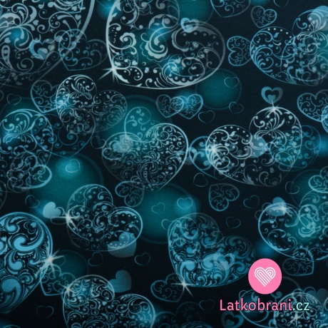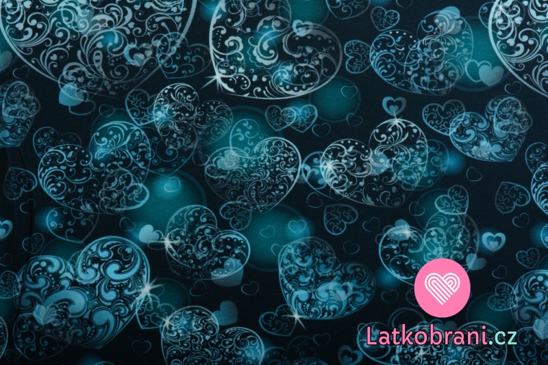 Úplet potisk srdíčka s ornamenty na temně zelené