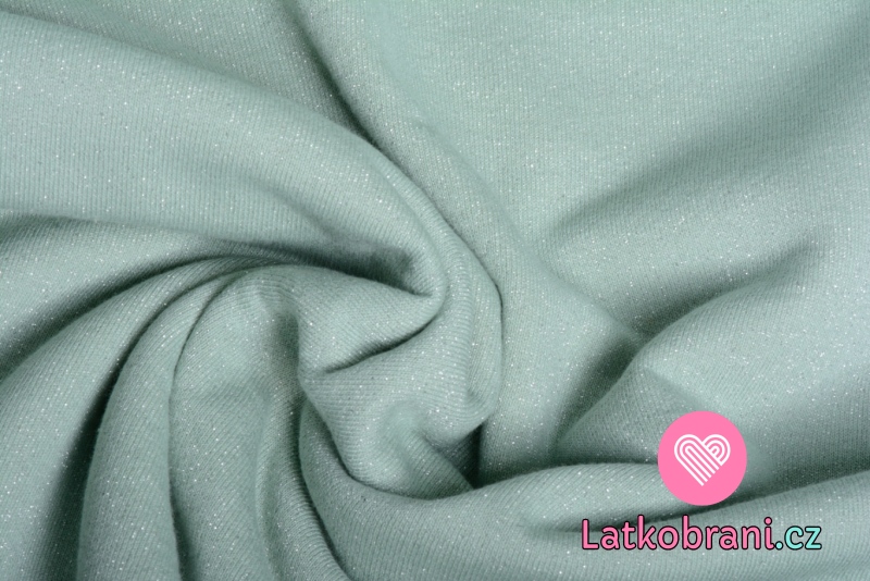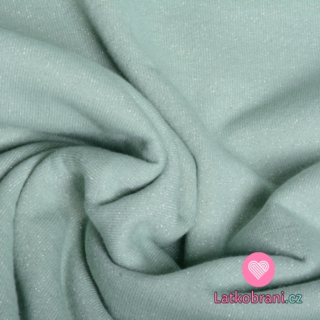 Teplákovina počesaná starozelená s třpytivými nitkami
