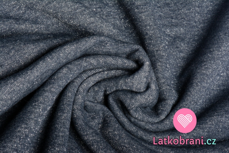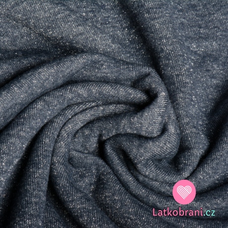 Teplákovina počesaná námořnicky modrá s třpytivými nitkami