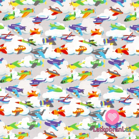 Úplet potisk letadla na světle šedé