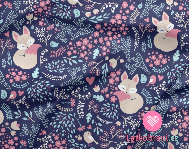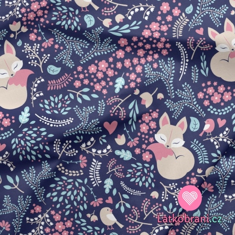 Úplet potisk lištička s kvítky na modrofialové