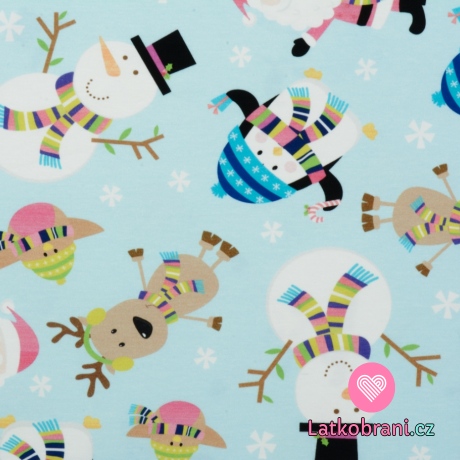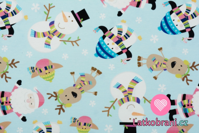 Úplet potisk sobík, sněhulák, tučňák a Santa na modré