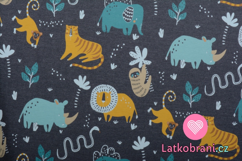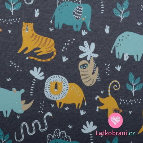 Úplet potisk divoká zvířata, tmavě šedý melanž