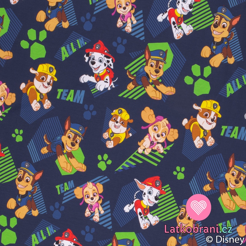 Úplet potisk Tlapková patrola tým na modro - zeleném podkladu