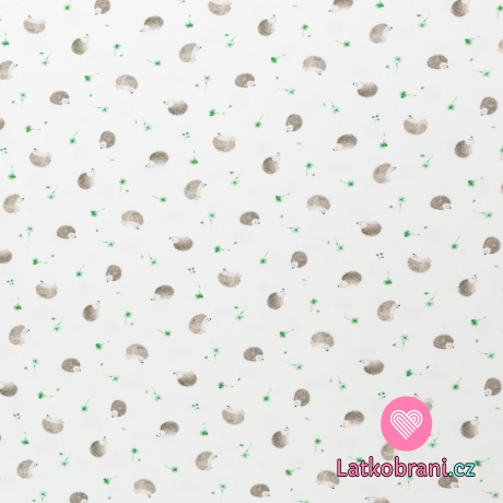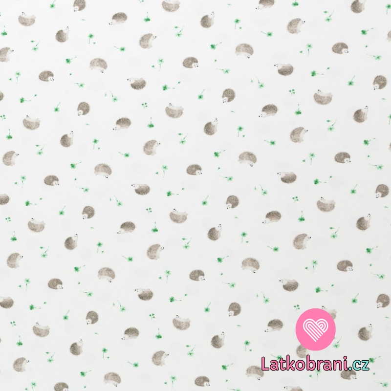 Úplet potisk ježečci mezi čtyřlístky na bílé