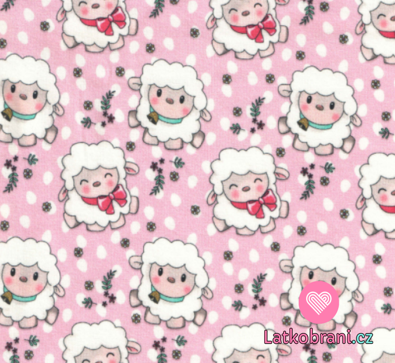 Úplet potisk ovečky na růžové