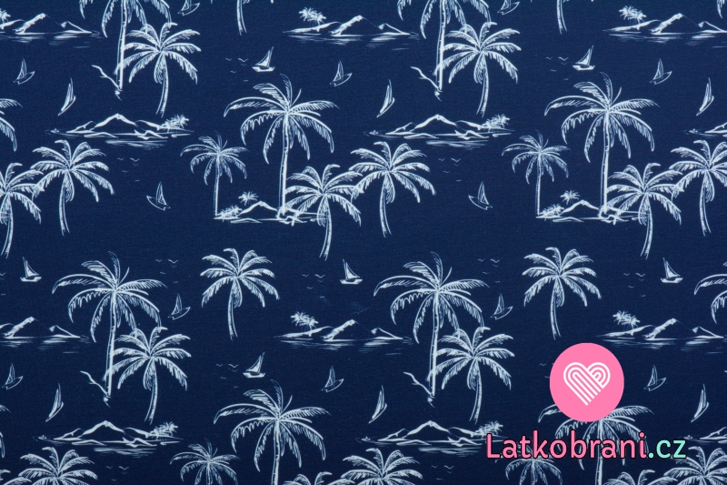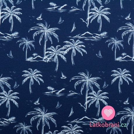 Úplet potisk palmy na tmavě modré