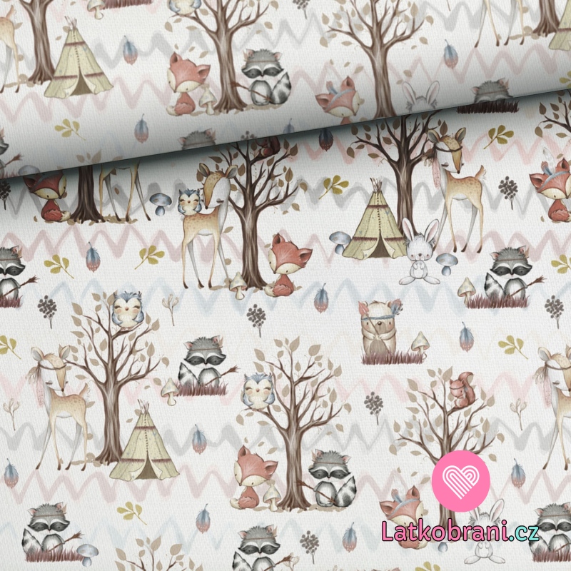 Bavlněné plátno lesní přátelé u týpí