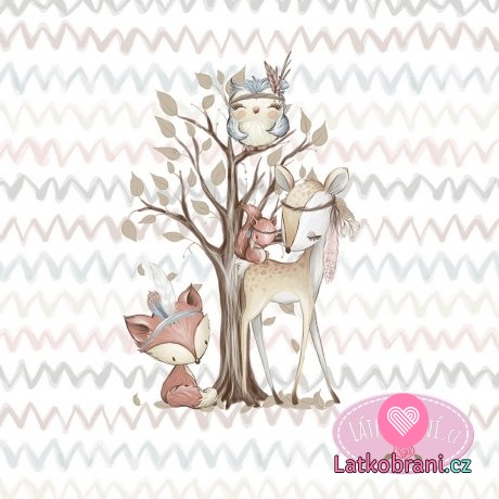 Bavlněný panel lesní zvířátka u stromu velký 100x158 cm