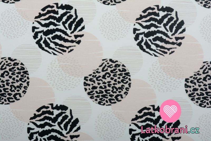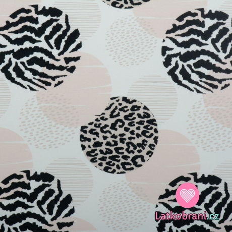 Teplákovina potisk vzorované kroužky na bílé