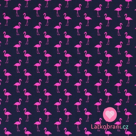 Úplet potisk růžoví plameňáci na navy modré