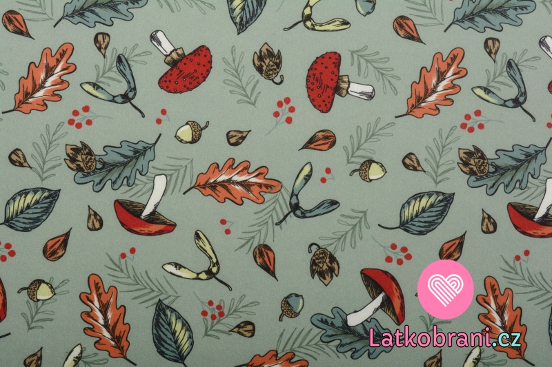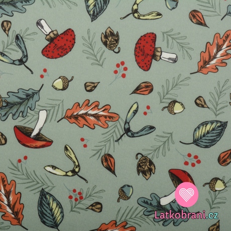 Softshell houbičky mezi podzimním listím na zelené
