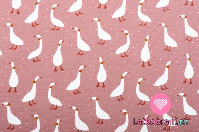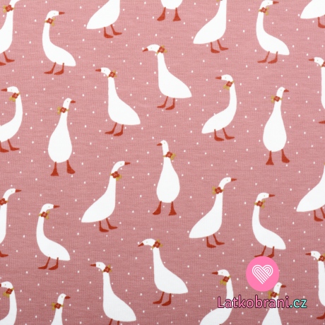 Úplet potisk husy mezi tečkami na starorůžové, BIO