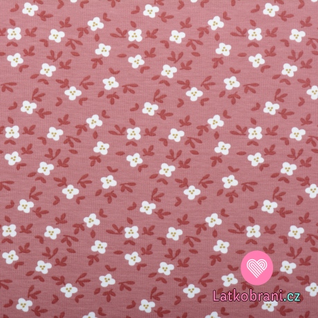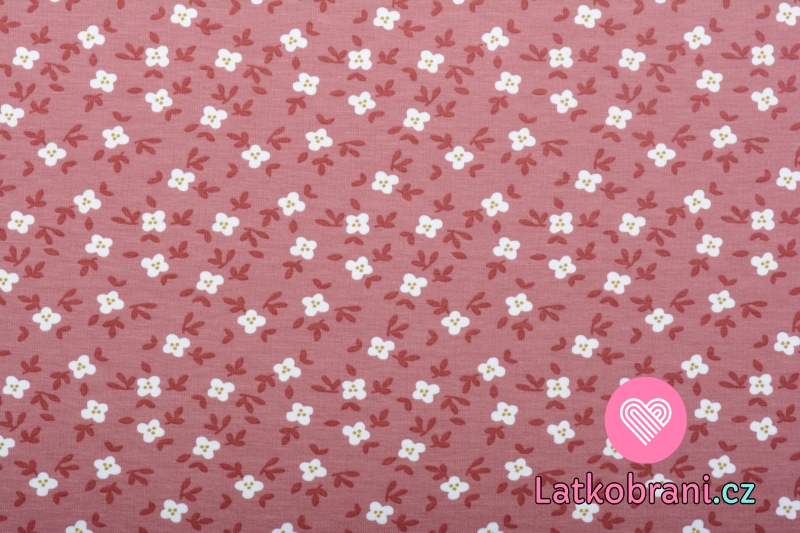 Úplet potisk drobná kvítka na starorůžové, BIO