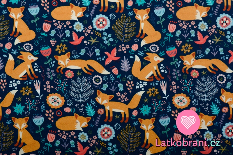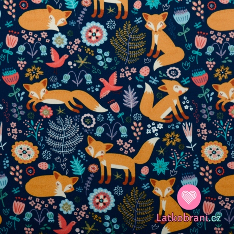 Úplet potisk liška neposeda na tmavě modré