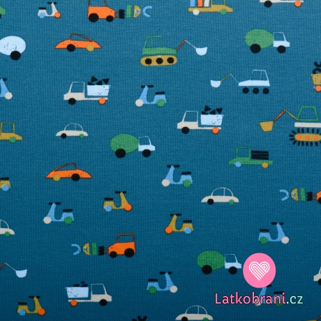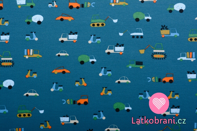 Úplet potisk stavební vozidla na petrolejově modré, BIO