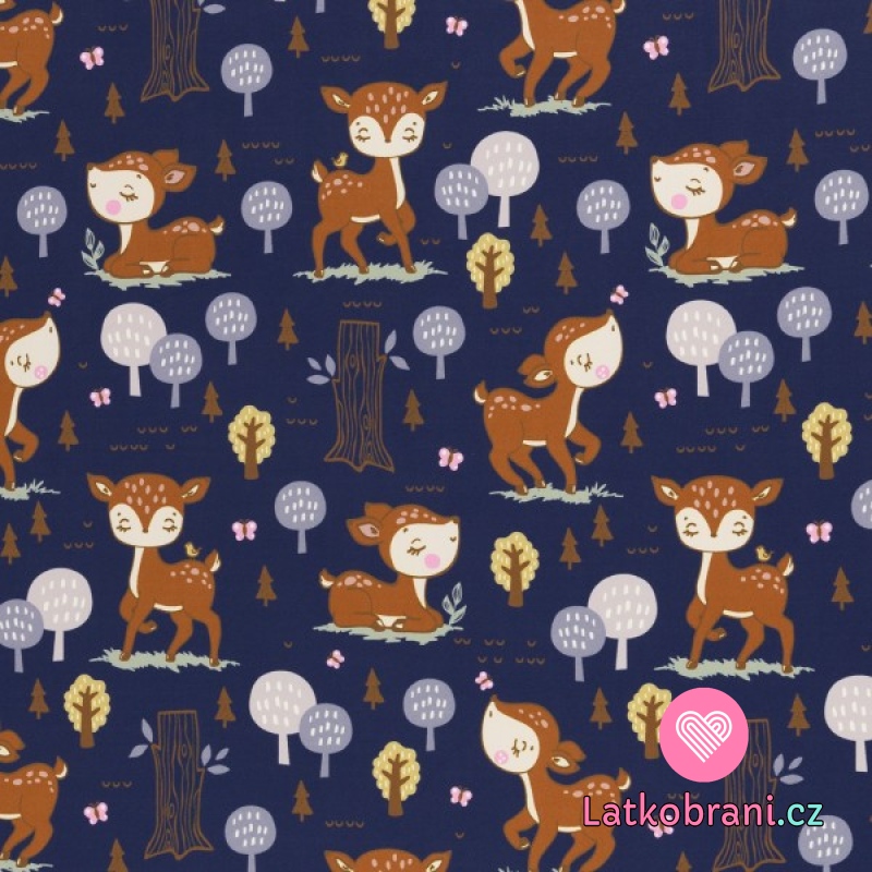 Softshell potisk koloušek mezi stromečky na námořnicky modré