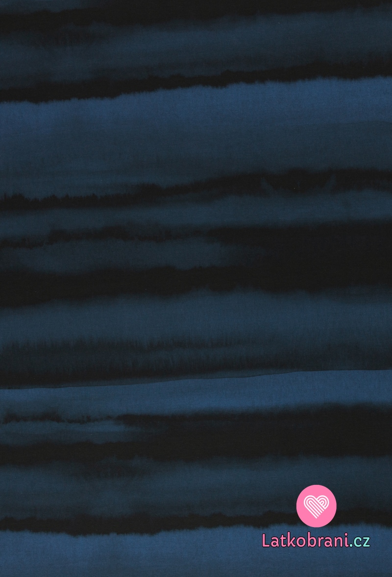 Úplet potisk batikované modré pruhy na černé