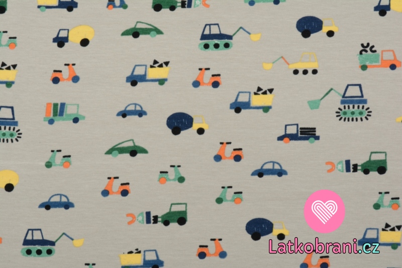 Úplet potisk stavební vozidla na béžové, BIO