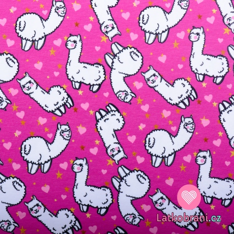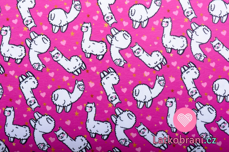 Úplet potisk roztomilé lamy na růžové