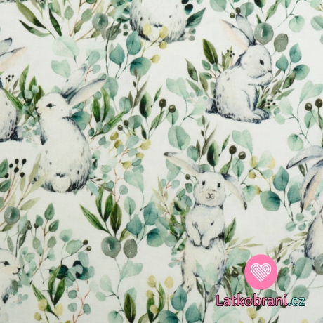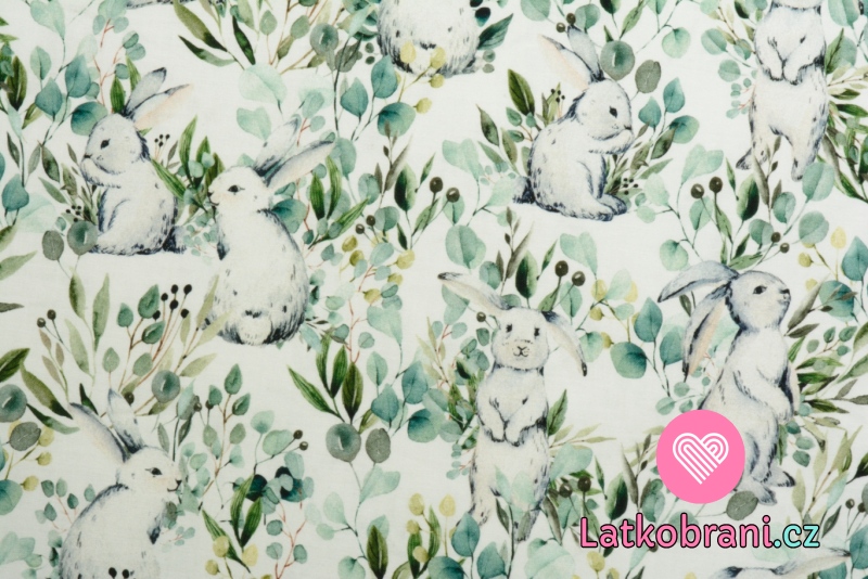 Bavlněné plátno králíci na pastvě
