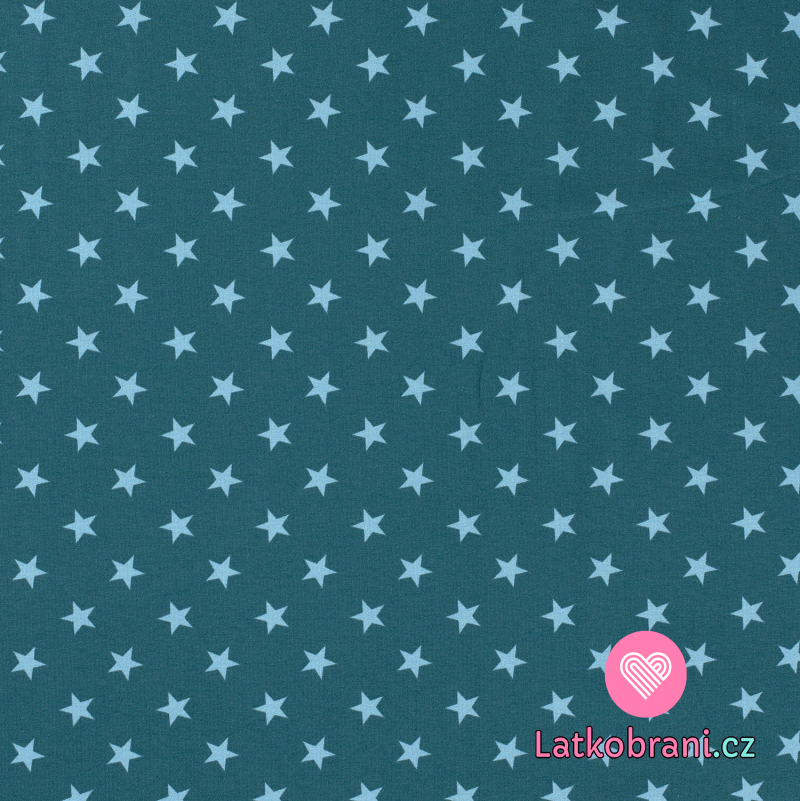 Teplákovina potisk světle modré hvězdičky na petrolejové