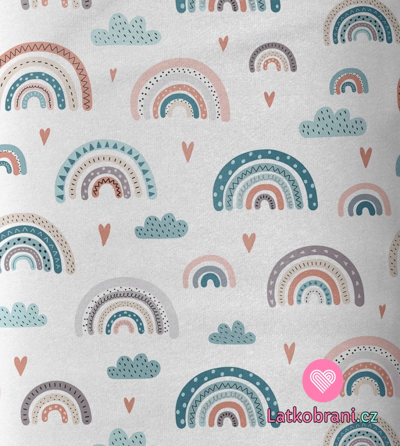 Úplet potisk veselá duha mezi mráčky a srdíčky