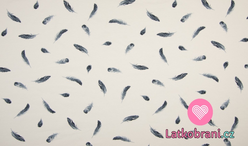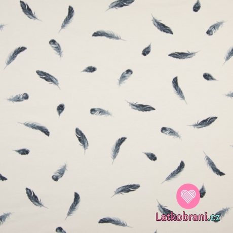 Úplet potisk poletující šedo-modrá peříčka na smetanové