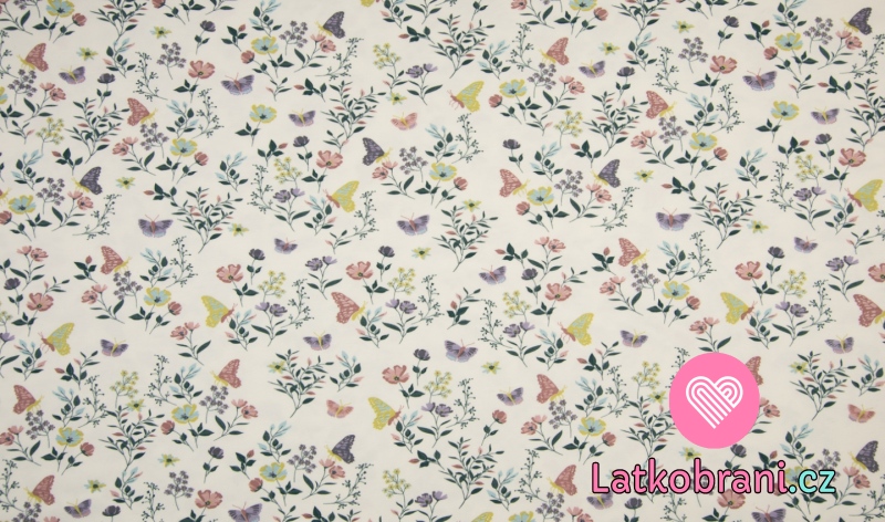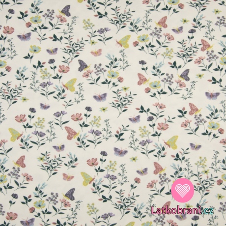 Úplet potisk rozkvetlá louka s motýlky ecru