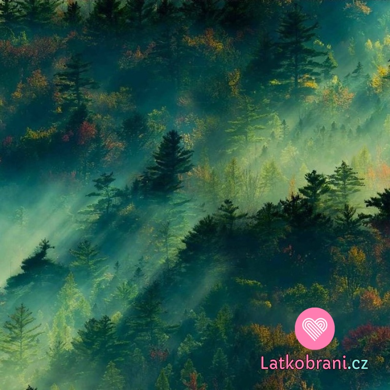 Teplákovina potisk sluneční paprsky v lese