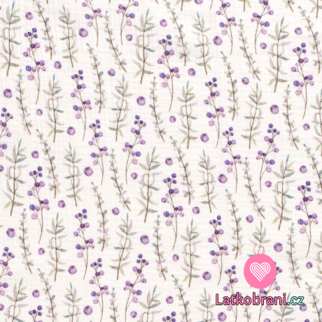 Dvojitá gázovina / mušelín borůvky mezi borůvčím na bílé