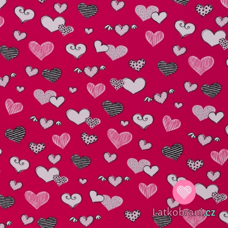 Úplet potisk rozverná srdíčka na růžové