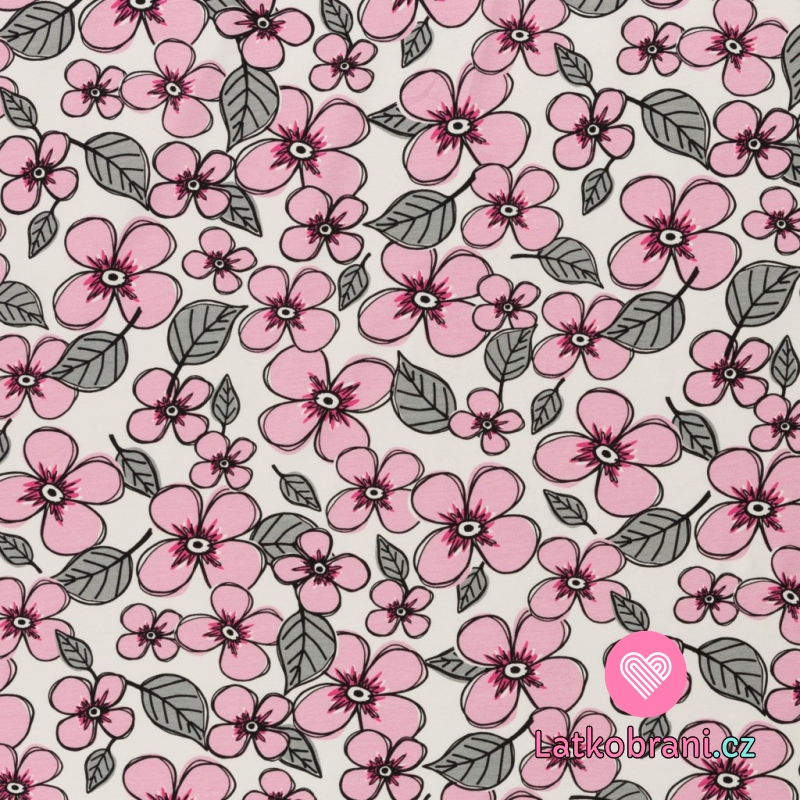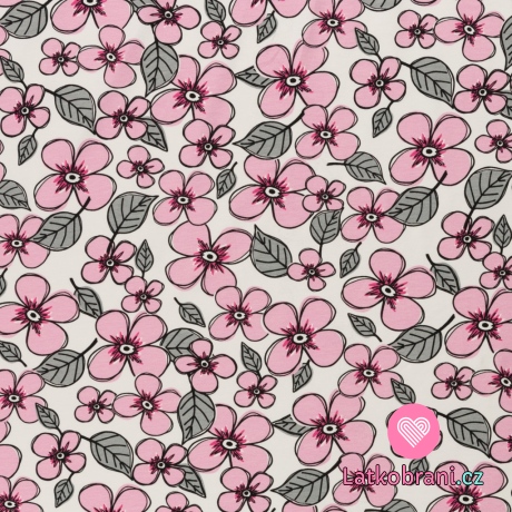 Úplet potisk malované kytičky na bílé