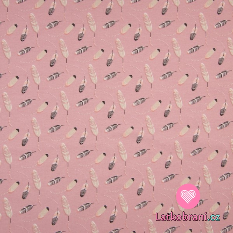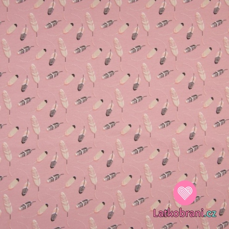 Úplet potisk rozházená pírka na růžové