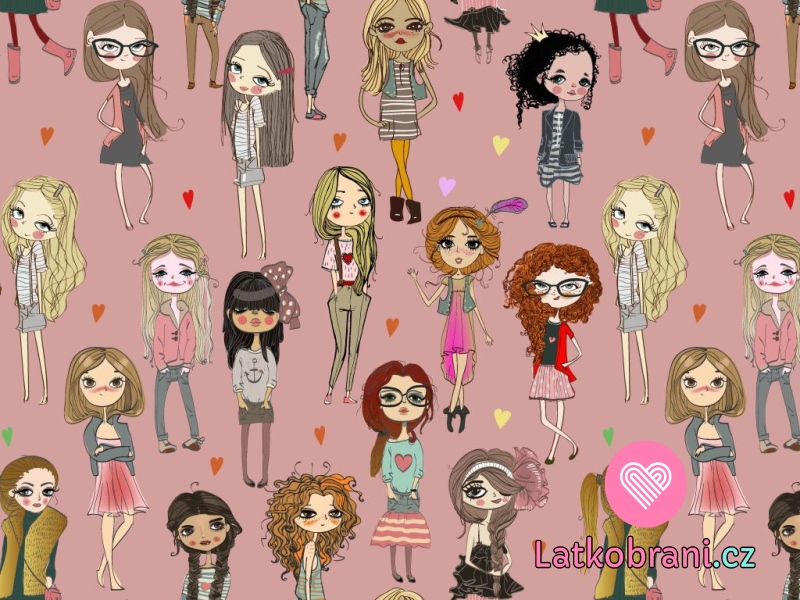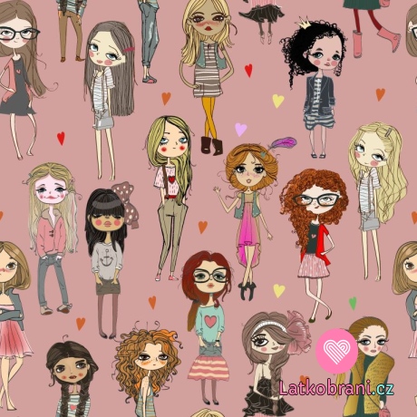 Úplet potisk trendy dívky na růžové