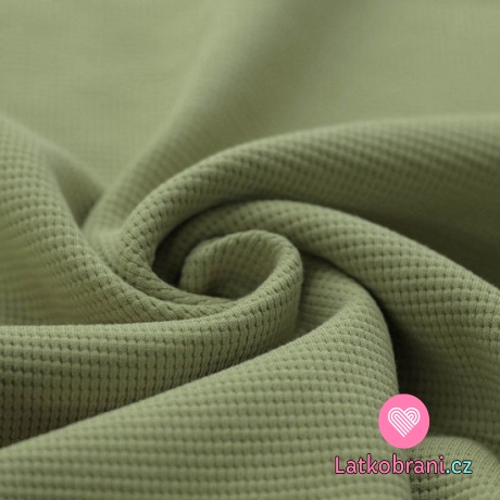 Bavlněný vaflový úplet jednobarevný olivový