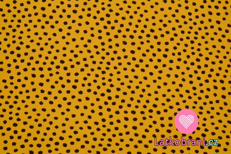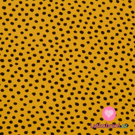 Úplet potisk nepravidelné černé puntíky na okrové, BIO