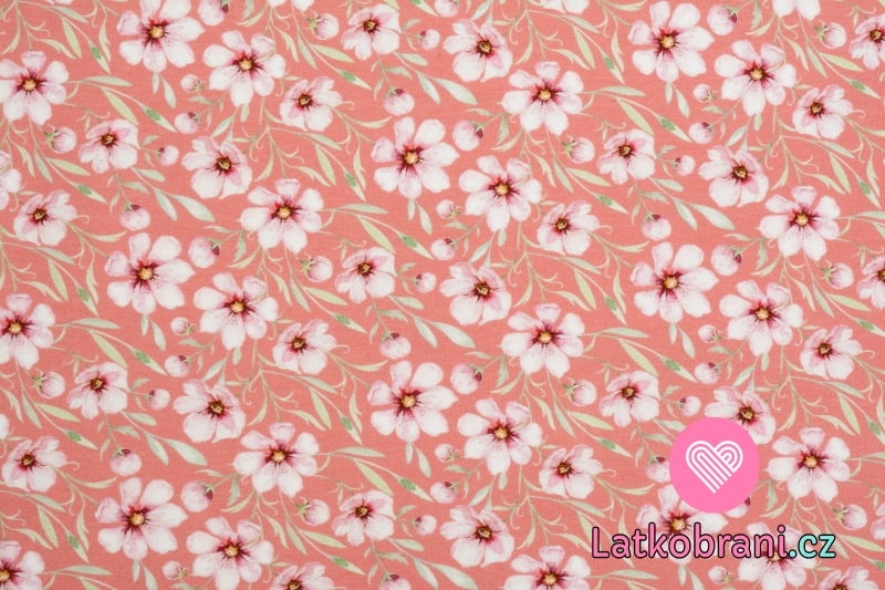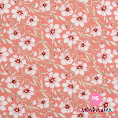 Úplet potisk jabloňový květ na růžové, BIO