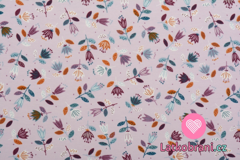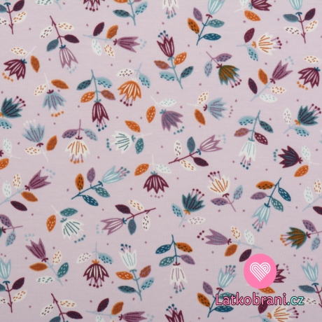Teplákovina potisk malované tulipány na světle fialové, BIO