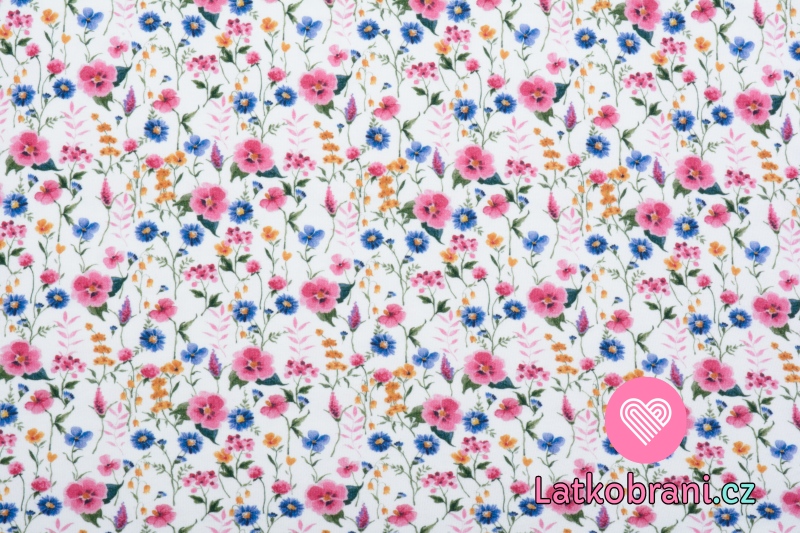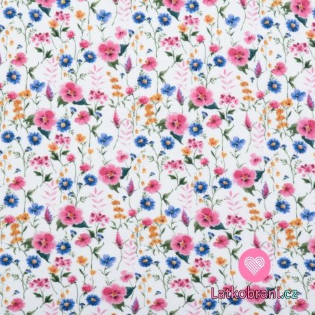 Úplet potisk luční kvítí na bílé, BIO