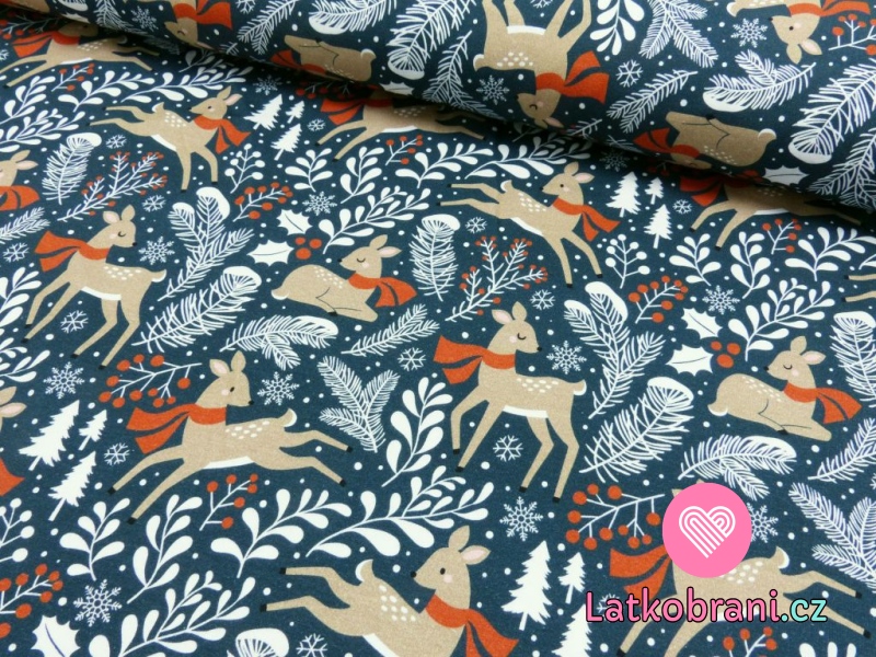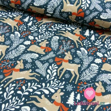 Úplet potisk zimní laň na námořnicky modré