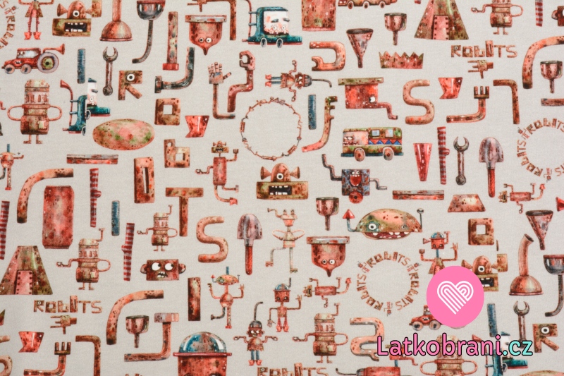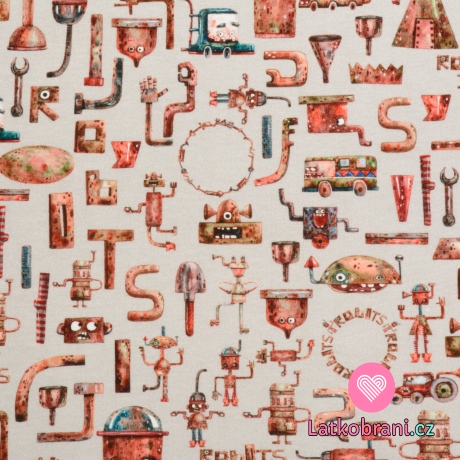 Úplet potisk roboti ze šrotu na světle šedé, BIO