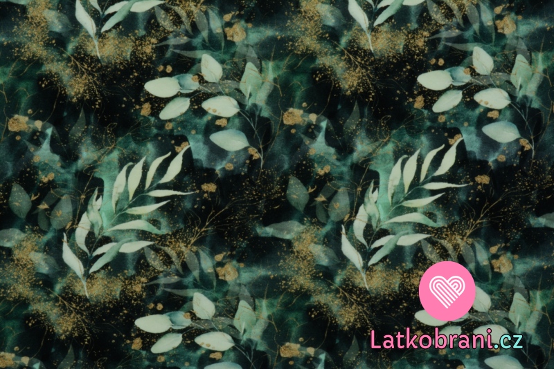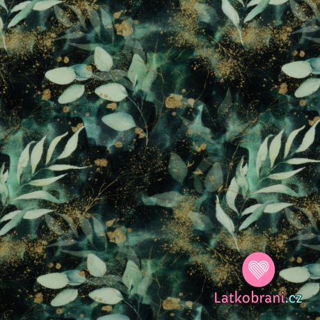 Teplákovina potisk lístečky mezi zlatým pylem na černé